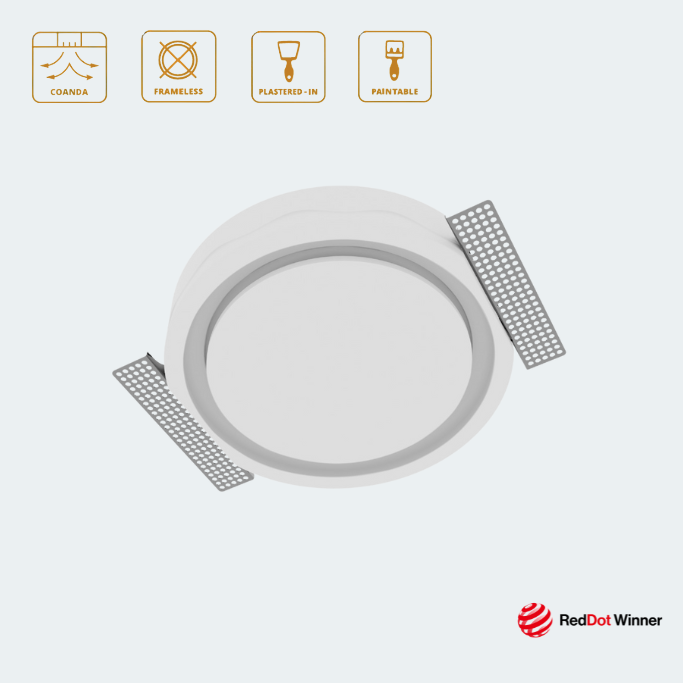 The PCircle Coanda diffuser was developed to address a long-standing challenge: creating a diffuser that generates a true Coanda effect without compromising the clean, modern look demanded by architects and designers. This is especially complex for supply-air diffusers, where airflow must be both powerful and discreet, unlike extraction systems.
